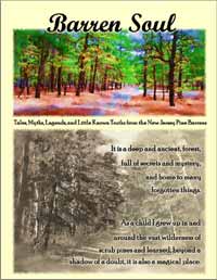 "It is a deep and ancient forest, full of secrets and mystery, and home to many forgotten things." Legend has it that the small creeks and streams that run throughout the vast expanse that is the Pine Barrens are a deep reddish-brown in color, tinted, local legends would have you believe, by the blood of the many victims of the Devil that inhabits these woods. Like most things the outsiders say and believe, there's a parcel of truth hidden amongst the weeds there somewhere. The Barrens' streams do run a dark orange or red most times of the year; their slow-moving water taking on the colors of the iron ore and cedar trees it meets along the way. That's what accounts for the unusual color of the Piney creeks, the government and university experts would have you believe. But Grandmother had another explanation for the colored water of the Pines, a secret she said the Pineys but that most outsiders refused to believe, even when they heard it. She called the Barrens "the heart of the land," the last area that man had yet to ruin with his ambitions and designs, and explained that the colored water in the Piney streams was just the land's blood flowing through that heart. Barren Soul is a book of stories, legends, and little known truths about the New Jersey Pine Barrens, one of the last great unexplored and uncharted areas in North America. It is written and illustrated by individuals who have spent their days living in the shadows on the Barrens's trees, and their nights listening to the sounds of the creatures that wander the endless woods. It is a glimpse into the soul of the ancient wood, an introduction to the legends and history that form our current knowledge of the Barrens, and a testament to the beauty of living a life in harmony with the forces around us. |